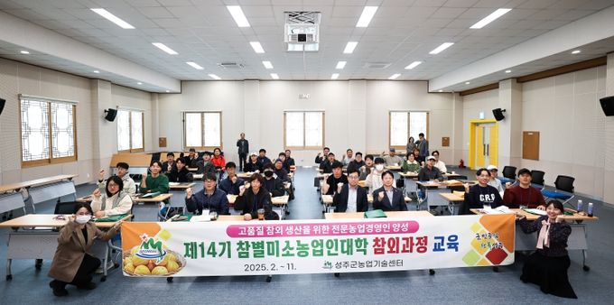 (아름다운교육신문) 성주군 농업기술센터는 2월 28일 센터 대강당에서 35명의 교육생이 참석한 가운데 농업·농촌을 선도하는 전문 농업인 양성을 위한‘2025년 제14기 참별미소농업인대학 참외과정 입학식’을 개최했다.