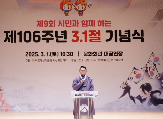 제106주년을 맞이한 3.1절의 의미를 되새기기 위해 바르게살기운동 서산시협의회가 주최한 기념식에는 이완섭 서산시장, 독립유공자 후손, 유공 단체 회원 등 500여 명이 참석했다.