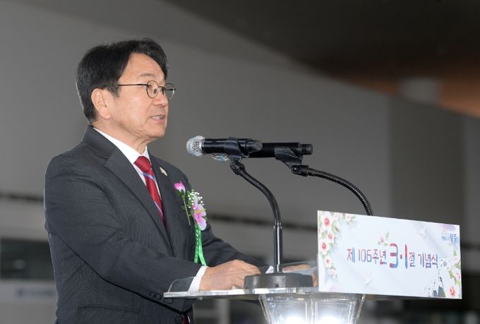 강 시장은 먼저 “당연한 것들을 거스르는 억지를 우리 눈으로 목도했고, 역사의 수레바퀴를 거꾸로 돌리려는 시도를 경험했기에 106주년 3·1절은 더욱 뜻깊다”며 “노력 없이 역사의 진보는 없고, 공동체의 평화도 없다는 사실을 우리는, 여실히 깨달았다”고 밝혔다.