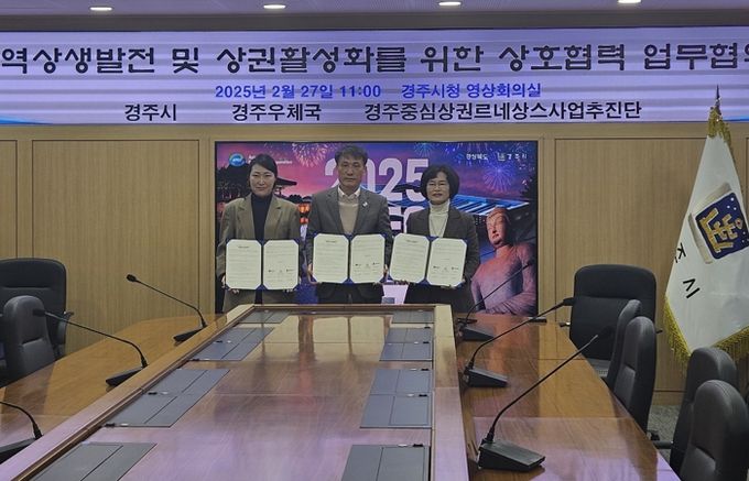업무협약식에는 고영달 경주시 경제산업국장, 김미승 경주중심상권 르네상스사업추진단장, 박상숙 경주우체국장 등이 참석했다.