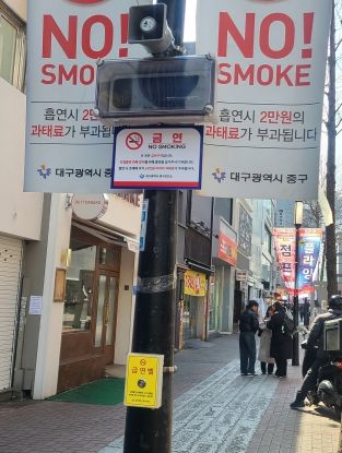 이번 금연벨 설치는 상습 흡연구역에서 발생하는 간접흡연 피해를 줄이고, 금연구역의 실효성을 높이기 위해 추진됐다. 설치 장소는 유동 인구가 많고 간접흡연 관련 민원이 자주 발생하는 동성로 금연거리(CGV대구한일~(구)중앙파출소) 내 보안등 2개소로 선정했다.