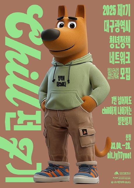 올해 제7기를 맞는 대구청정넷은 슬로건을 청년들 사이에서 유행하는 칠가이 밈(Chill guy meme)을 활용한 ‘칠전 7기, 정책에 미chill다’ 로 선정하고, 정책 탐구 및 교류활동을 적극 펼쳐 나갈 예정이다.