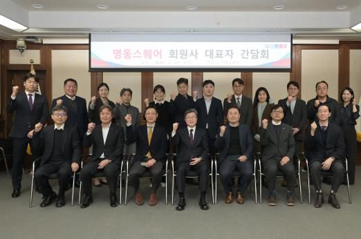 구는 지난 27일, 명동스퀘어 회원사와 간담회를 열어 특별가로구역 지정에 대한 설명과 함께 발전 방향을 논의했다. 이날 간담회에는 롯데백화점, 신세계백화점, 하나은행, 교원프라퍼티, 나우인명동 등 주요 기업 관계자들이 참석해 명동스퀘어의 경쟁력 강화 방안에 대해 의견을 나눴다.