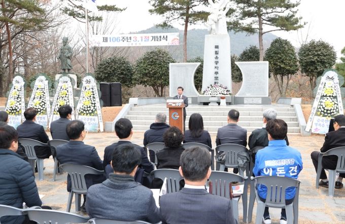 이날 기념식은 정인화 광양시장, 최대원 시의회의장, 독립유공자 유족, 기관단체장, 시민 등 100여 명이 참석한 가운데 국민의례, 헌화·분향, 기념사와 유족 대표의 독립선언서 낭독에 이어 독립운동의 정신을 기리고 나라 사랑의 뜻을 담은 만세삼창 순으로 진행됐다.