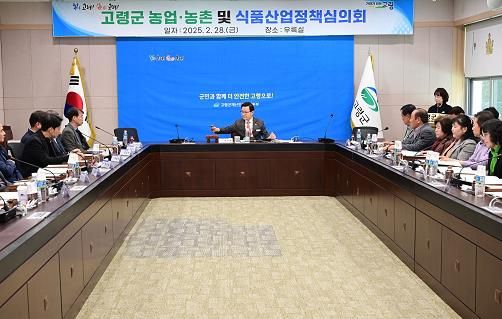 (아름다운교육신문) 고령군은 2월 28일 2025년 농림축산식품사업 확정과 2026년 예산신청을 위한 농업‧농촌 및 식품산업정책심의회를 군청 우륵실에서 개최했다.