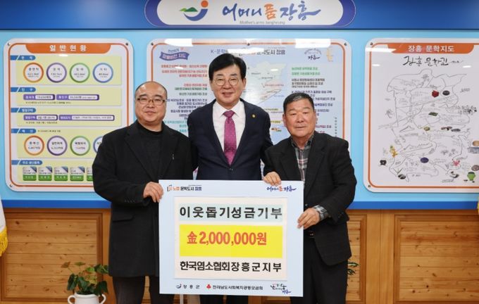김성 장흥군수는 “어려운 이웃을 위해 함께해주신 염소협회 회장님과 회원분들께 감사드린다. 기부해주신 성금은 어려운 이웃의 복지향상을 위해 잘 사용하겠다.”고 밝혔다.
