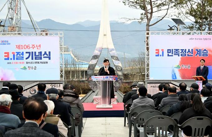 최훈식 군수는 기념사를 통해 “3.1절 106주년을 맞아 나라를 위해 고귀한 생명을 바친 순국선열과 독립유공자, 유가족 여러분께 진심으로 존경과 감사를 표한다”며 “장수군도 국가유공자들이 자긍심을 가질 수 있도록 세심한 보훈 정책을 추진하고 예우에 최선을 다하겠다”고 전했다.