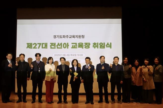 (아름다운교육신문) 경기도파주교육지원청은 2025년 3월 4일 파주시 시민회관에서 전 직원이 참석한 가운데 제27대 전선아 교육장의 취임식을 가졌다.