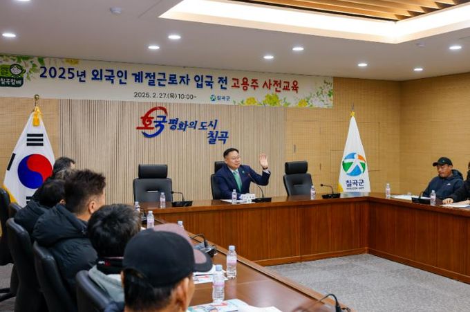 (아름다운교육신문) 칠곡군은 27일 칠곡군청에서 2025년 외국인 계절근로자 신청 농가주 53명을 대상으로 사전교육을 실시했다.