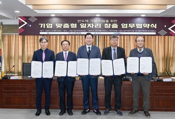 (아름다운교육신문) 원주시는 3월 4일 시청 7층 투자상담실에서 ㈜디에스테크노, ㈜지큐엘, 한국폴리텍대학 원주캠퍼스, 고용노동부 원주지청과 함께 반도체 기업 지원을 위한 ‘기업 맞춤형 일자리 창출’ 업무협약을 체결했다.
