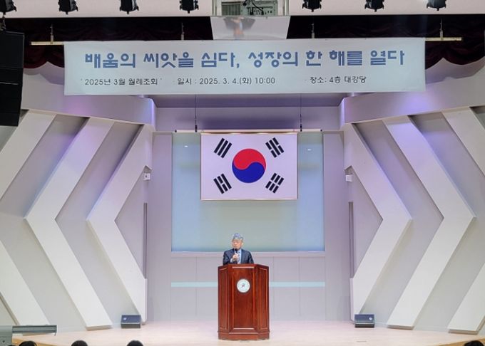 (아름다운교육신문) 경기도성남교육지원청은 4일, 대강당에서 ‘배움의 씨앗을 심다, 성장의 한 해를 열다’를 주제로 한 월례회의를 개최했다. 이번 월례회의는 성남 교육행정과 학교 운영의 개선을 위해 그간의 잘못된 관행을 고치고, 새로운 방식으로 발전할 수 있는 방안을 모색하기 위한 자리로 “아버지(‘아’주 나쁜 ‘버’릇은 버리고 ‘지’금부터 고치자)” 사안 발굴 및 사례 발표회를 실시했다.