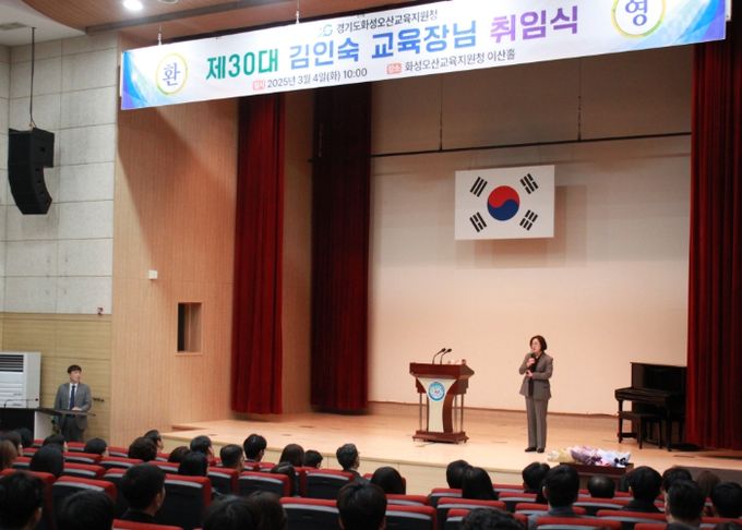 (아름다운교육신문) 경기도화성오산교육지원청 제30대 김인숙 교육장이 2025년 3월 4일 이산홀에서 취임식을 갖고 공식 업무를 시작했다.
