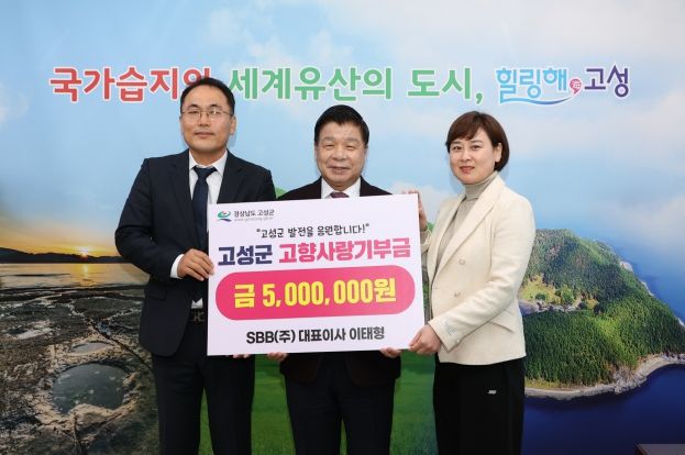 (아름다운교육신문) 고성군은 3월 4일 김해시 소재의 친환경설비업체SBB㈜ 이태형 대표이사가 고향사랑기부금 500만 원을 기탁했다고 밝혔다.