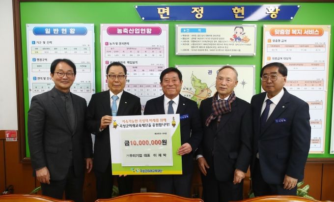 (아름다운교육신문) 전남 곡성군은 지난 28일 ㈜우리기업의 이재박 대표가 재단법인 곡성군미래교육재단에 곡성형 인재 양성을 위한 장학금 1천만 원을 기탁했다고 전했다.