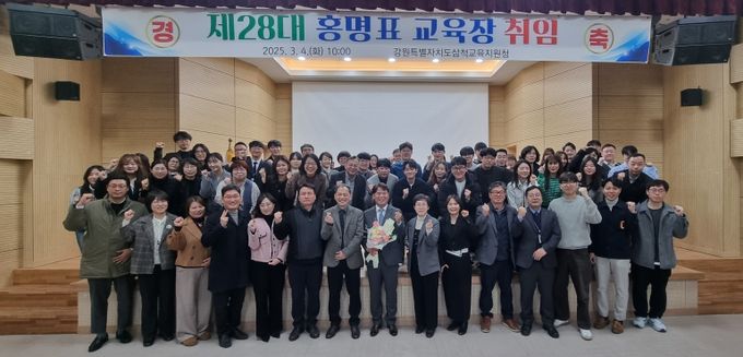 (아름다운교육신문) 삼척교육지원청은 3월 4일, 1층 대회의실에서 전 직원이 참석한 가운데 제28대 홍명표 교육장 취임식을 가졌다.