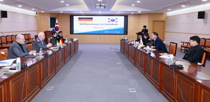 (아름다운교육신문) 전북특별자치도는 4일 도청에서 독일 잘란트주 부총리(경제·혁신·디지털·에너지장관) 및 잘란트경제진흥공사 대표단을 맞이하고, 전북 지역의 바이오·수소·에너지 분야 기업들이 참여하는 간담회를 개최했다.