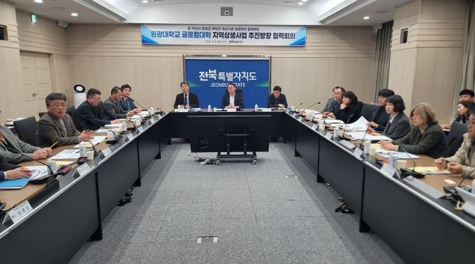 전북자치도는 4일, 김종훈 경제부지사를 주재로 도 관련 실국장, 원광대 부총장, 익산‧임실‧부안 부단체장, 생명산업분야 유관기관 관계자 등 20명이 참석한 가운데 ‘원광대 글로컬대학 지역상생사업 추진방향 협력회의’를 개최했다.