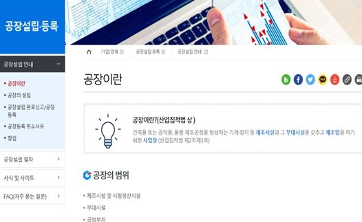 새롭게 개설된 공장설립 안내 누리집에는 공장설립 승인 및 등록 절차에 대한 상세한 설명과 함께, 관련 용어, 각종 서식, 유용한 포털사이트 링크, 자주 묻는 질문(FAQ) 등이 포함되어 있다.