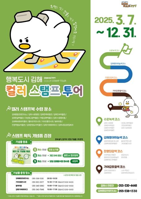 홍태용 시장은 “스탬프 투어를 통해 김해 곳곳의 관광지를 둘러보며 행복한 추억의 시간을 만드시길 바란다”고 말했다.