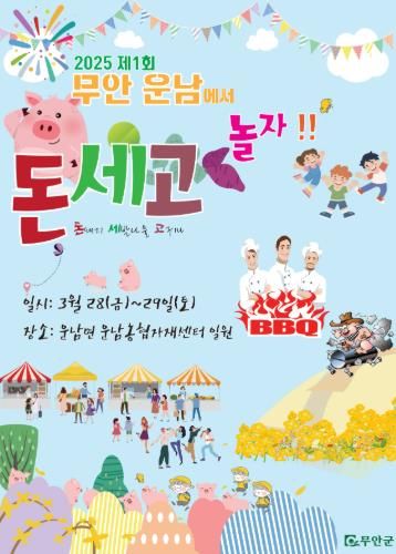 (아름다운교육신문) 전남 무안군은 ‘2025 운남에서 돈·세·고 놀자 축제’를 3월 28일부터 29일까지 운남면 소재지 일원(운남농협자재센터)에서 개최한다.