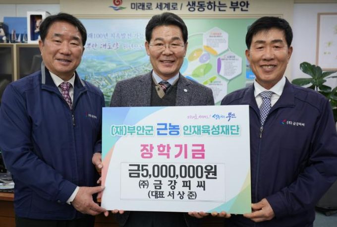 (아름다운교육신문) ㈜금강피씨는 지난 4일 부안군 근농인재육성재단을 방문하여 부안 지역 학생들을 위한 장학금 500만원을 기부했다.