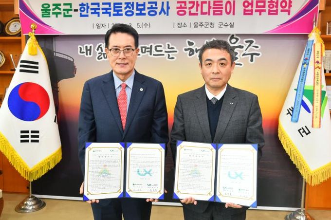 (아름다운교육신문) 울산 울주군이 5일 군청 소회의실에서 한국국토정보공사(부산울산지역본부)와 올해 공간정보 행정지원 사업 추진을 위한 ‘공간다듬이 서비스’ 업무협약을 체결했다.