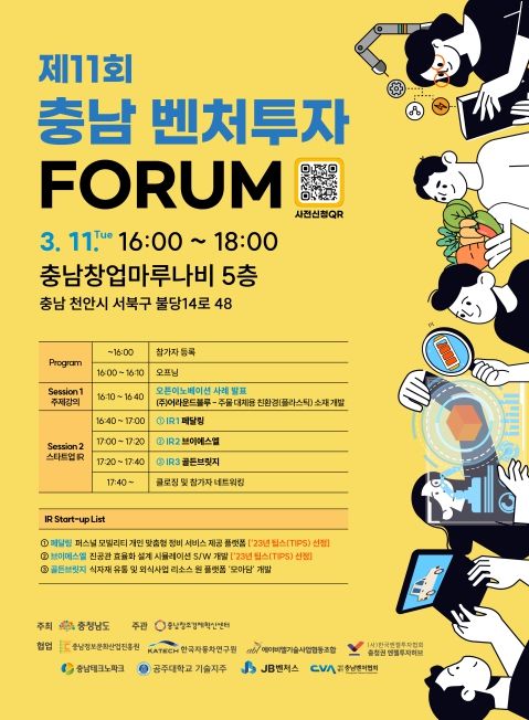 제11회 충남 벤처혁신 포럼 참여는 충남창조경제혁신센터 홈페이지 또는 구글 폼을 통해 누구나 무료로 신청할 수 있다.