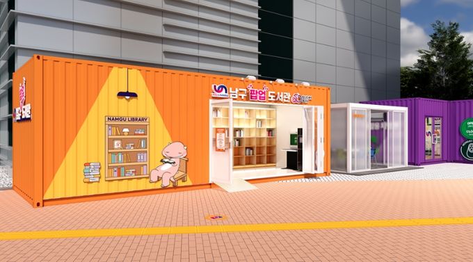 컨테이너를 개조한 △팝업도서관은 신간도서 대출·반납 및 북큐레이션 등 자료실 업무를 제공하며, 운영은 3~11월(화~일 09:00 부터 18:00), 장소는 남구청사 정문 옆이다.