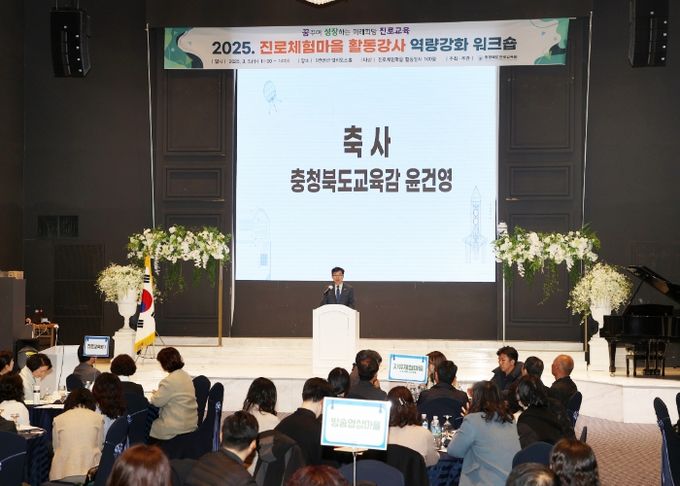 윤건영 교육감은 환영사에서 “불확실성의 시대를 살아가는 지금 진로교육의 개념도 달라지고 있다. 진로 역량의 중심에는 '자기 주도성'과 '끈기와 도전 정신'이 있다. 역량을 키우는 과정은 '실력다짐 충북교육'이며, 역할을 해주시는 분들은 활동강사 여러분들이다.”라며, “진로체험 프로그램이 내실 있게 운영되고 학생들이 의미 있는 경험을 할 수 있도록 지원을 아끼지 않겠다. 이 시간이 새로운 배움과 교류의 기회가 되기를 소망한다.”고 말했다.