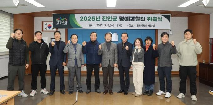 군은 명예감찰관 선발을 위해 지난 2월 24일부터 28일까지 인터넷 접수 및 읍·면 추천 등을 통해 공개 모집하고, '진안군 주민감사관 등의 운영 규정'에 의해 평소 사회적 신망이 높고 행정에 관한 식견과 경험이 풍부한 자 등으로 구성했다.