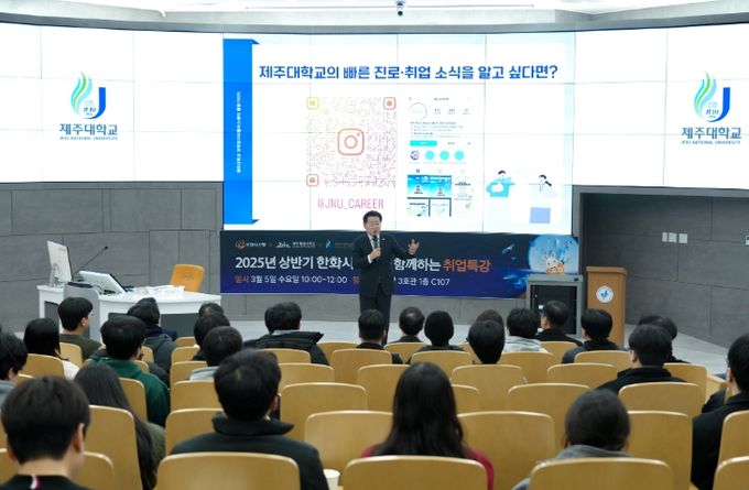 설명회에는 한화시스템 우주산업 관련 직원들이 참석해 취업에 필요한 역량과 자격 요건 등을 설명했다. 특히 지난해 한화시스템에 채용된 제주대학교 출신 합격자들이 멘토링 프로그램을 통해 취업 준비 경험과 노하우를 공유하며 취업을 준비하는 재학생들과 소통하는 시간을 가졌다.