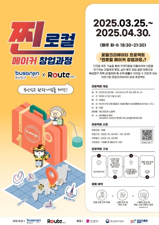 (아름다운교육신문) 부산진구는 지역주민들의 취·창업 역량 강화를 위한 제조기반 로컬 크리에이터 과정인 ‘찐로컬 메이커 창업과정’에 참여할 주민을 3월 4일부터 3월 18일까지 모집하고 있다고 밝혔다..