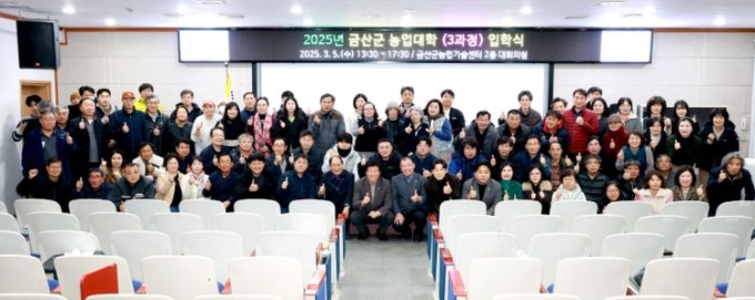 (아름다운교육신문) 금산군은 지난 5일 금산군농업기술센터 대회의실에서 지역 농업 발전을 선도할 전문 인재 양성을 목표로 하는 농업대학 입학식을 개최했다.