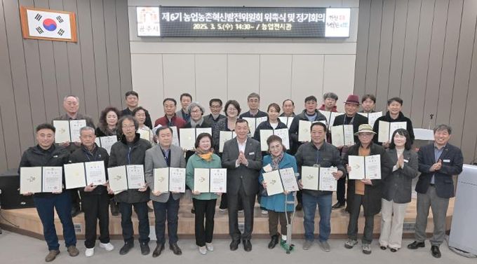 이번에 위촉된 제6기 위원회는 농업인 등 민간위원 30명과 관련 공무원 5명 등 총 35명으로, 이들은 농업 분과 12명, 농산물 유통 분과 11명, 농촌 사회 분과 12명으로 나뉘어 활동하게 된다.