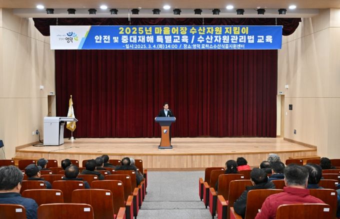 (아름다운교육신문) 영덕군은 지난 4일 로하스수산식품지원센터에서 마을어장 12곳의 수산자원지킴이들을 대상으로 안전 수칙과 중대재해법, 불법 해루질에 관한 교육을 시행했다.