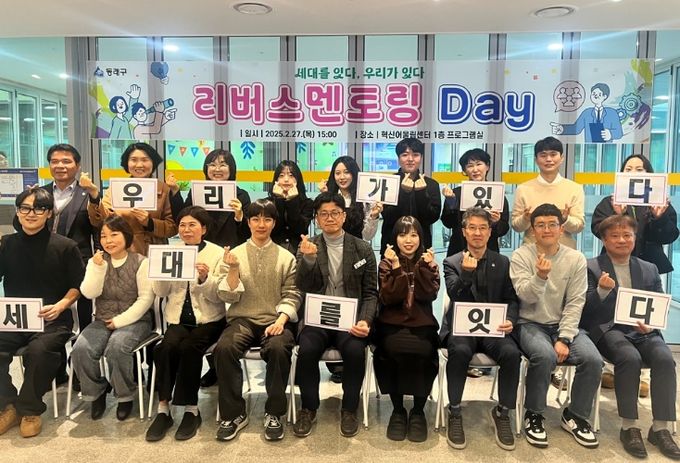 (아름다운교육신문) 부산 동래구는 지난달 27일 혁신어울림센터 1층 프로그램실에서 세대 간 소통과 조직문화 혁신을 위해 동래구 MZ세대로 구성된 혁신 주니어보드 공무원들과 부구청장 등 간부 공무원이 함께하는 리버스 멘토링(Reverse Mentoring) 데이를 개최했다고 밝혔다.