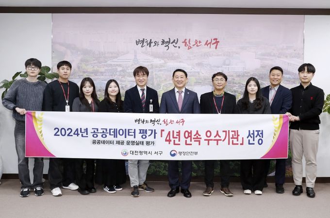 (아름다운교육신문) 대전 서구가 지난달 행정안전부 주관 2024년 데이터기반행정 평가 우수기관으로 선정됨에 이어, 공공데이터 제공 운영실태 평가에서도 4년 연속 최고 등급인 ‘우수기관’으로 선정되어 데이터 관련 선도 자치단체임을 알렸다.