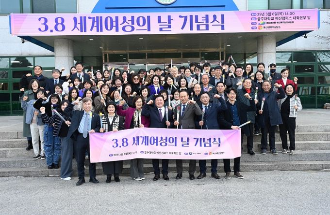 (아름다운교육신문) 예산군 아동·여성폭력방지위원회와 예산성폭력상담소(소장 이경옥)는 지난 6일 세계여성의 날을 맞아 공주대학교 예산캠퍼스에서 기념행사를 개최했다.