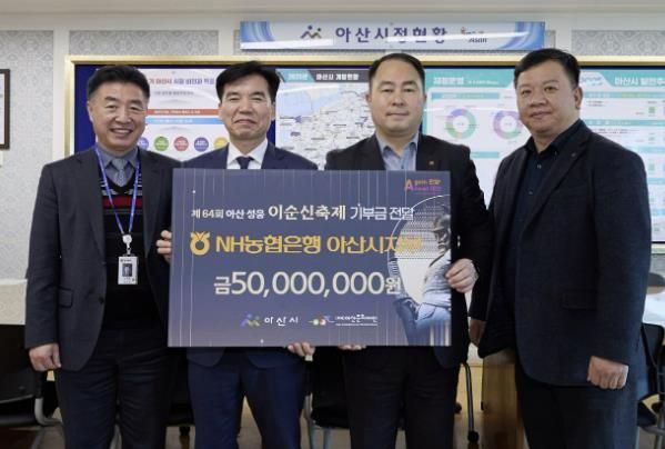 조일교 아산시장 권한대행은 “매년 아낌없는 후원을 통해 지역문화 발전에 기여하고 있는 NH농협은행 아산시지부에 감사드린다”며, “이순신장군 탄신 480주년이자 2025~2026 아산 방문의 해이기도한 올해 더욱 풍성해진 이순신 축제가 안전하고 성공적으로 치러질 수 있도록 최선을 다하겠다”고 밝혔다.