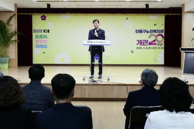 이민근 안산시장은 “고령화 가속의 시대에서 노인복지의 중요성이 점점 커지고 있는 가운데 어르신 복지의 핵심 역할을 수행하는 단원구노인복지관의 개관 20주년을 진심으로 축하드린다”고 운을 뗐다. 이 시장은 이어 “단원구노인복지관이 향후 지역사회의 거점 복지기관으로 자리 잡을 수 있도록 적극적인 지원과 정책을 아끼지 않겠다”고 말했다.