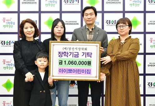한편, 경산시 진량읍 선화리에 위치한 아이뽀어린이집은 공공형 어린이집으로 매년 원생들과 바자회 수익금을 경산시장학회에 기탁하고 있다.