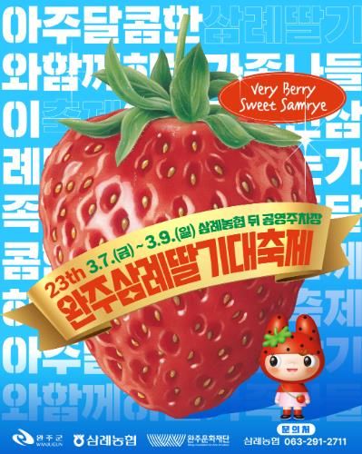 이외에도 축제장 체험부스를 비롯해 인근의 삼례읍 비비정 예술열차, 향토예술문화회관 미션을 통해 스탬프를 모으고 딸기 한 상자를 보상으로 제공하는 ‘딸기스탬프 완벽정복’과 어린이 관람객을 주 대상으로 하는 공연과 체험, 방문객이 참여하는 대형 딸기 케이크 만들기 행사까지 다채로운 이벤트가 방문객을 만나고 있다.