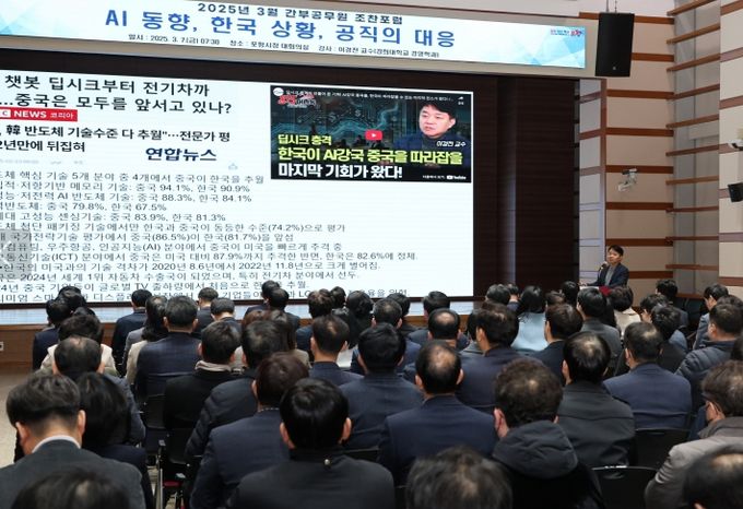 (아름다운교육신문) 포항시는 7일 오전 시청 대회의실에서 이경전 경희대학교 빅데이터응용학과 교수를 초청해 간부 공무원 100여 명을 대상으로 ‘AI 동향, 한국 상황, 공직의 대응’을 주제로 조찬 포럼을 개최했다.