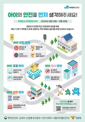 올해 개학기 중점 정비 지역은 초등학교 주변 ▲어린이보호구역(주 출입문 300m), ▲'교육환경법'상 교육 환경 보호구역(경계선 300m), ▲'어린이식생활법'상 식품안전보호구역 등 상가 및 유흥업소 등이 밀집한 가로변 도로 등 통학로 일대를 중점적으로 실시한다.