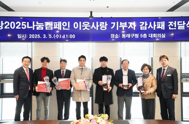 한편, 동래구는‘희망2025나눔캠페인' 기간동안 전년 대비 35% 증가한 성금과 성품을 모금하여 총 6억7백만 원을 달성했다.