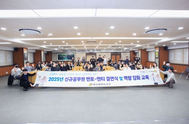 (아름다운교육신문) 대구 서구청은 3월 7일 구청 대회의실에서 신규 공무원의 안정적인 공직 생활 정착을 돕기 위해‘멘토-멘티 결연식 및 역량 강화 교육’을 실시했다.