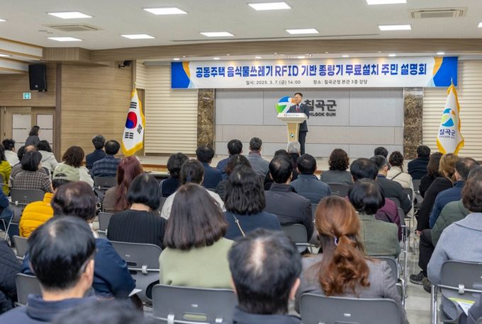 (아름다운교육신문) 칠곡군은 지난 7일 군청 강당에서 공동주택 음식물쓰레기 RFID 종량기 무료 설치사업 관련 주민설명회를 개최했다고 밝혔다.