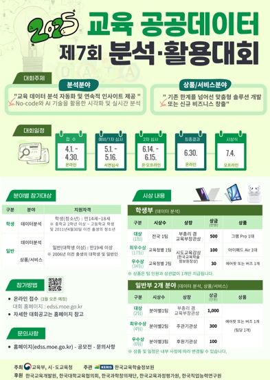 대회 참가 신청은 교육 공공데이터 분석활용대회 누리집에서 다음 달 1일부터 가능하며, 최종 시상식은 오는 7월 4일 개최될 예정이다.