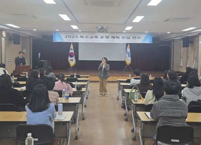 (아름다운교육신문) 서귀포시교육지원청은 6일 대강당에서 서귀포 관내 특수교사 및 특수교육 담당교사 80여 명 대상으로 2025학년도 서귀포시교육지원청 특수교육 운영 계획 전달 연수를 실시했다.