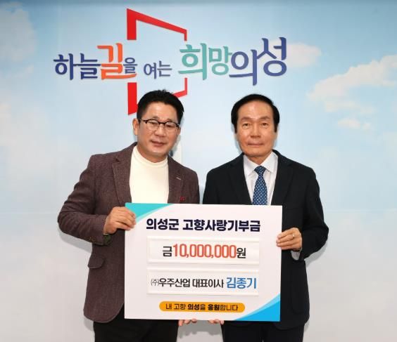 (아름다운교육신문) 의성군은 지난 7일 김종기 우주산업 대표가 고향사랑기부금 1,000만 원을 의성군에 기탁했다고 밝혔다.